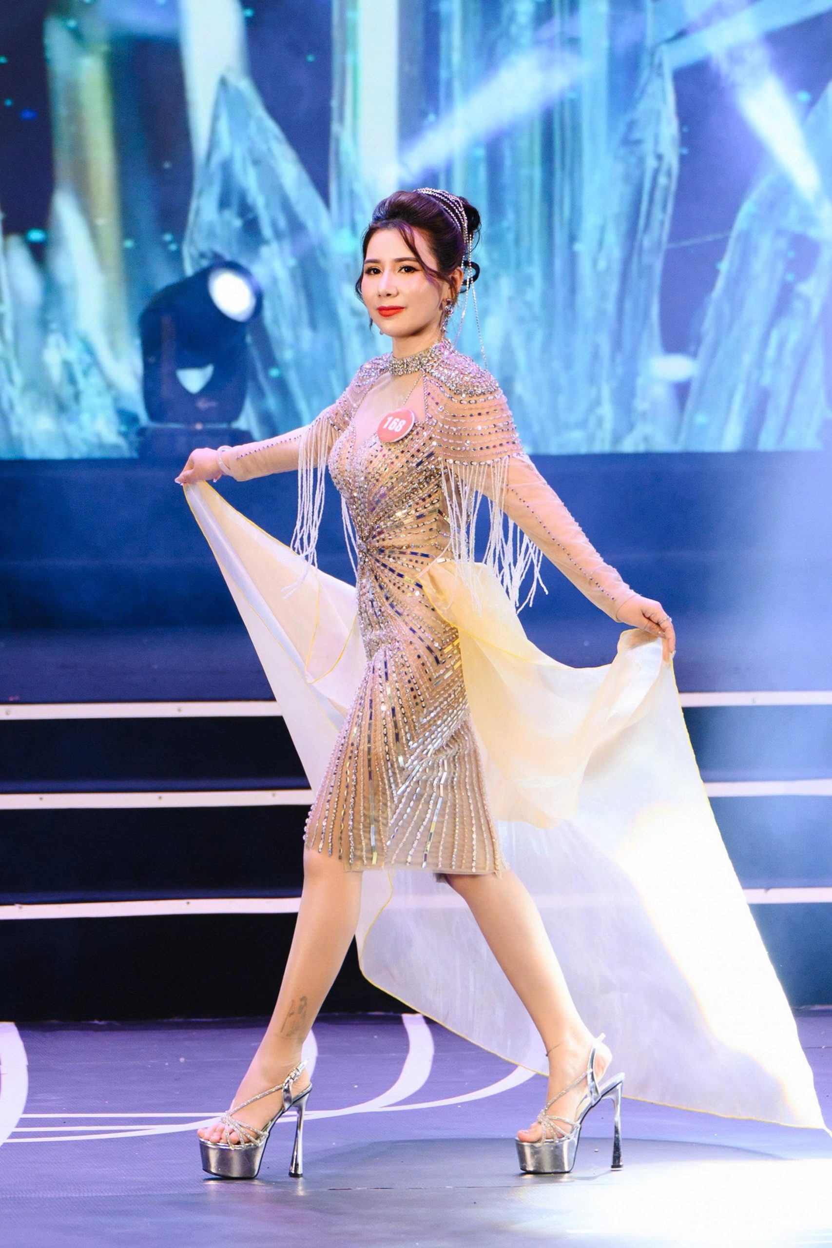 Trên sân khấu hoành tráng được dàn dựng mô phỏng nét văn hóa hào hùng của vùng đất Tây Sơn, các thí sinh tiếp tục duyên dáng khoe sắc trong bộ sưu tập áo dài “Sóng ánh kim – Huyền thoại biển Quy Nhơn” của nhà thiết kế Tony Phạm. Sử dụng chất liệu lụa cao cấp kết hợp kỹ thuật thêu tay tinh xảo, bộ sưu tập gợi hình ảnh người phụ nữ Việt dịu dàng, nền nã mà vẫn tràn đầy tự tin và bản lĩnh. Mỗi tà áo là một tác phẩm nghệ thuật, hòa quyện giữa hồn cốt truyền thống và hơi thở đương đại, tôn vinh nét đẹp mềm mại, thanh tao nhưng đầy tự hào của người phụ nữ Việt trong thời kỳ hội nhập.
