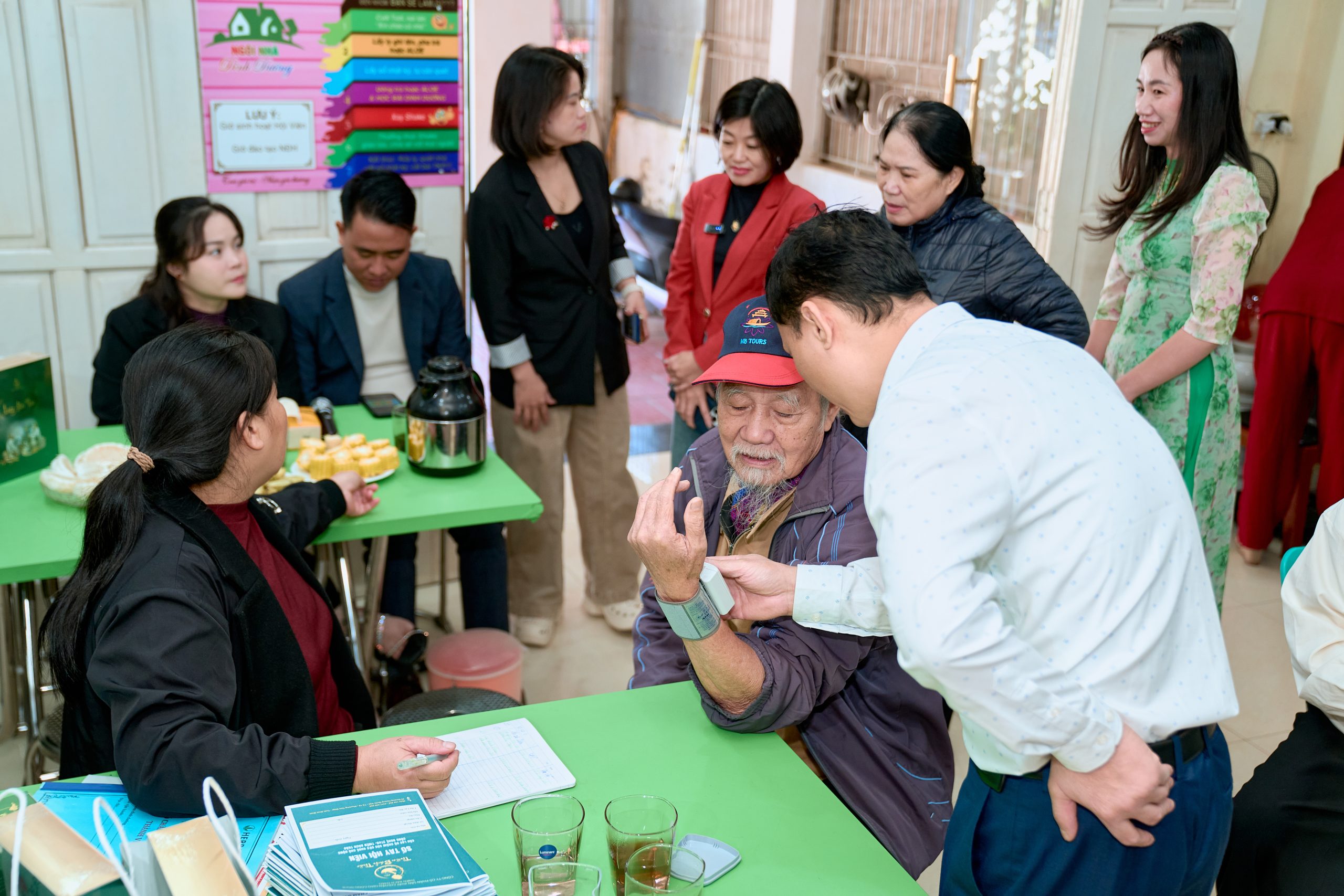 Khách hàng lớn tuổi được hỗ trợ đo chỉ số sức khỏe, đánh giá thể trạng để xây dựng phác đồ phù hợp